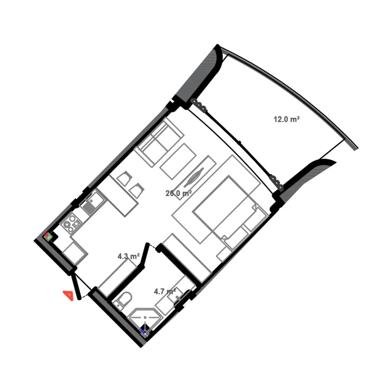 - 43-586 м²площадь апартаментов